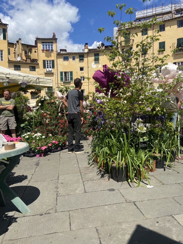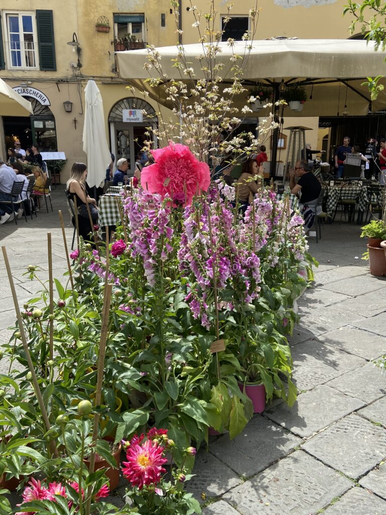 Byens centrale rum er en rund plads der tidligere har været et amfiteater, nu rummer den caféer, resteauranter og blomstermarked. Der var trængsel med trængsel på, rejseselskaber med en guide, mindre grupper og lokale der skulle have blomster til hus og have.
