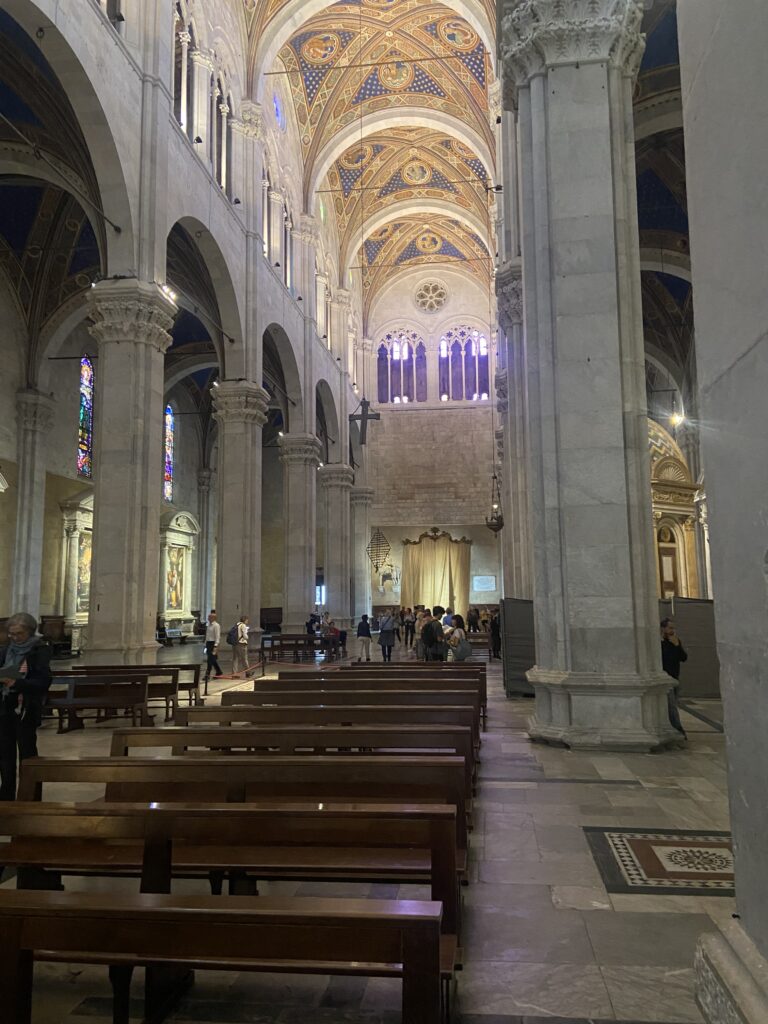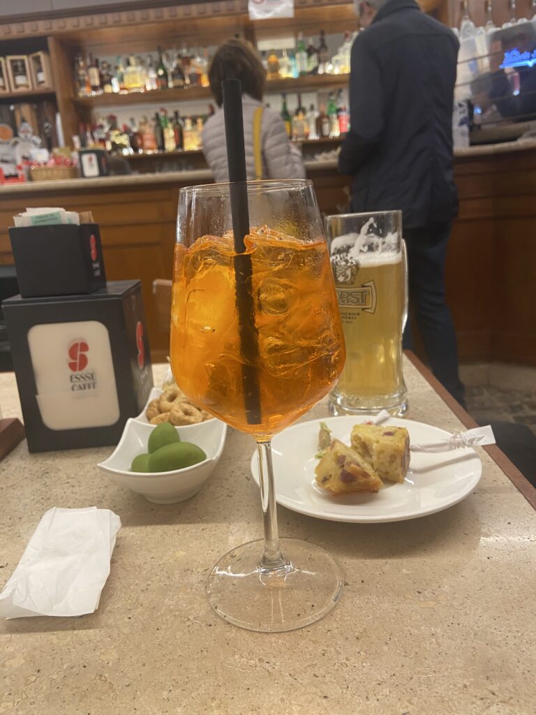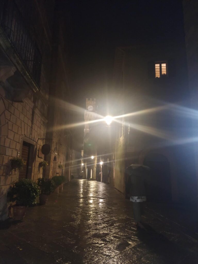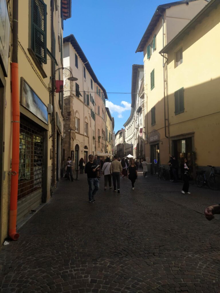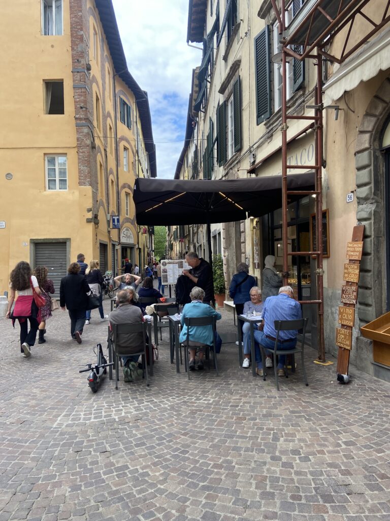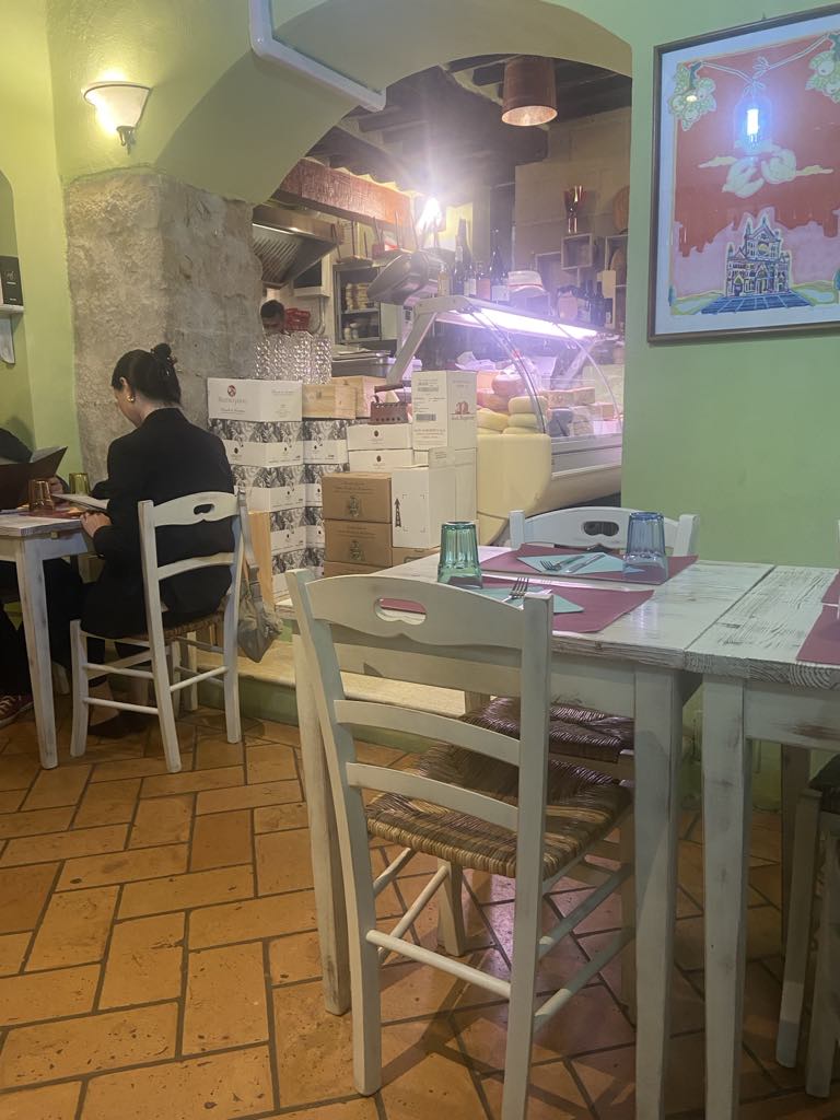 Vi kom rundt i de butikker vi gerne ville besøge, vi fik købt picorino ost og lidt håndcreme, men så kom regnen, og vi søgte ligesom mange andre ind på La Posta.