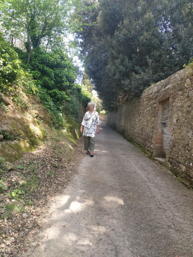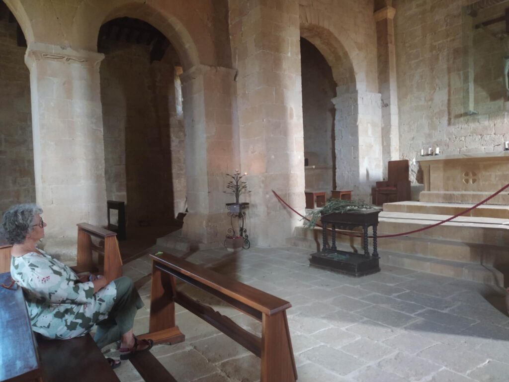 Bagefter gik vi en tur ud af byen til Podere Comlonbaia, der hvor vi boede i 17. Et dejligt gensyn, men det gav også tid til eftertanke om sygdom og vores gode liv sammen. Turen til Podere Colombia var ganske smuk, og på vej derud kom vi forbi en lille kirke fra 1100 tallet.
