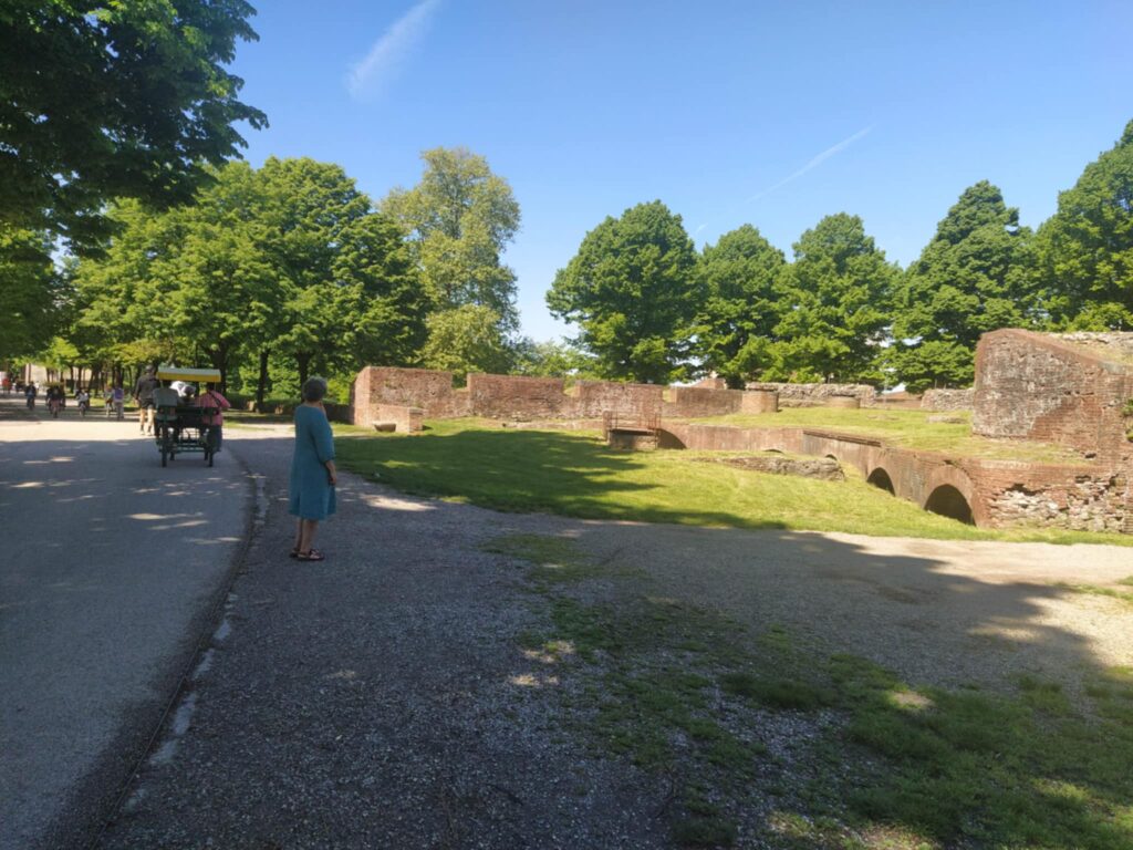 Bymuren rundt om Lucca er så stor og bred, at den fungerer som gang og cykelvej samtidig med at der er rekreative områder flere steder, hvor der i tidernes morgen var bastioner.