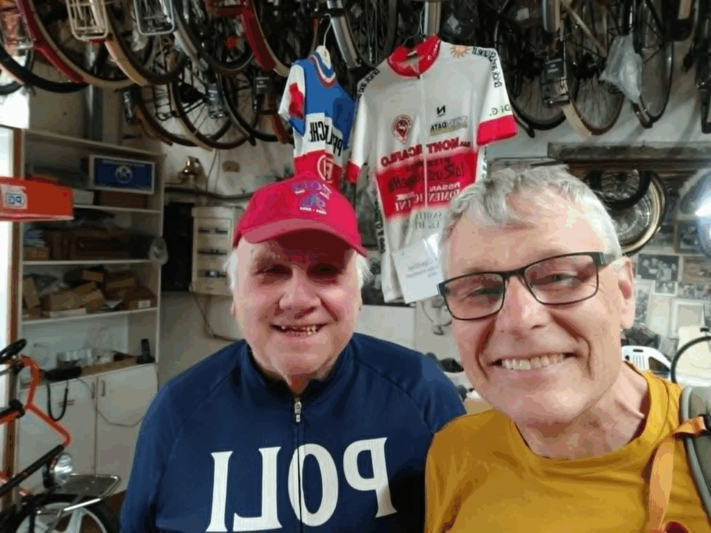 Cicli Poli. Hellige haller, hvor udsmykningen ikke er fede engle med basuner, men billeder af heltene fra landevejene gennem 90 år. Coppi, Bartali, Gimondi, hænger på væggene, men også danske cykelhelte har fundet nåde for indehaverens kritiske blik. Breschel, Chris Sørensen, Nicki Sørensen m.fl. fra nutiden, men størst af alle smykker Jørgen Marcussen væggen under rækken af bedagede cykelhjul, med et billede fra hans etapesejr i Giro d’Italia i 1980.