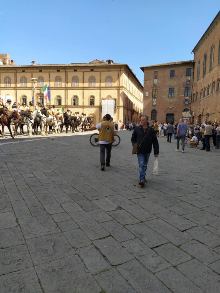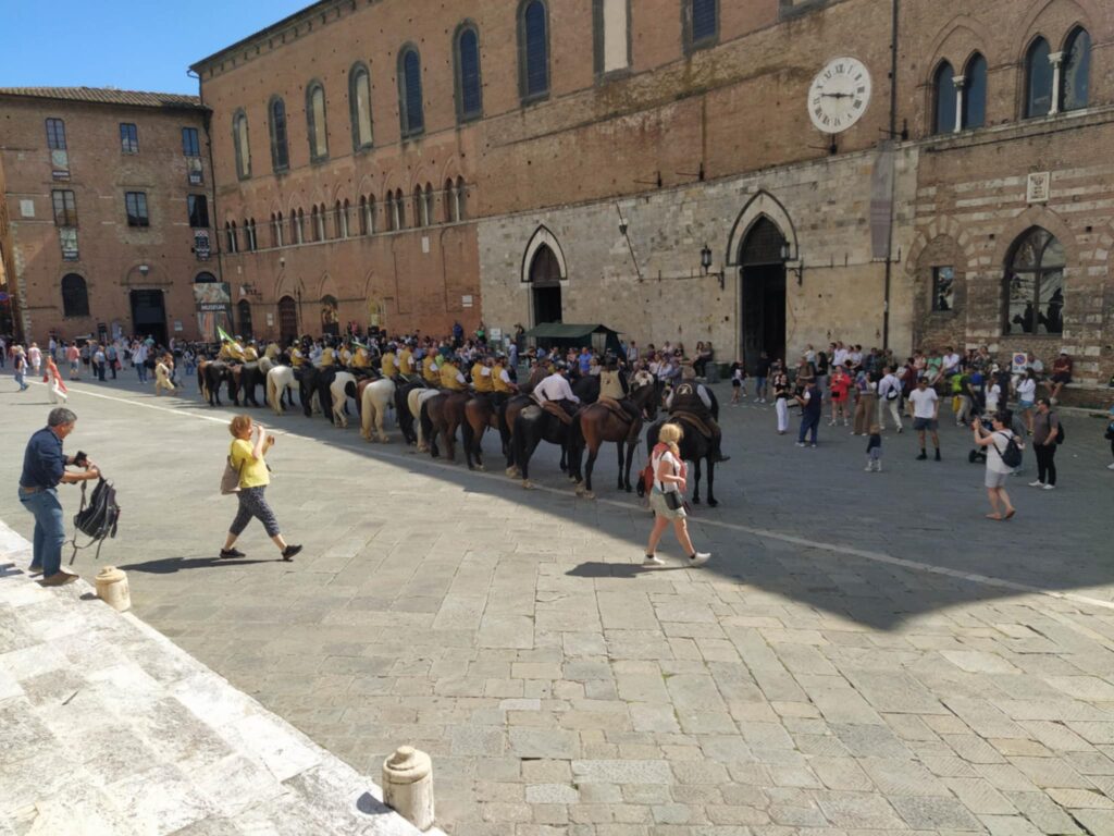 Klokken gik mod sen eftermiddag, og vi begyndte at trække mod Piazza del Campo og vores cykler. Vi var imidlertid lige nødt til, at trække det sidste ud af Siena, som blev gjort med en stor is med udsigt over den smukke muslingeformede plads, som hvert år danner rammen om Il Parlio, som er et berømt og berygtet hestevæddeløb mellem byens forskellige bydele kaldet Contrader.