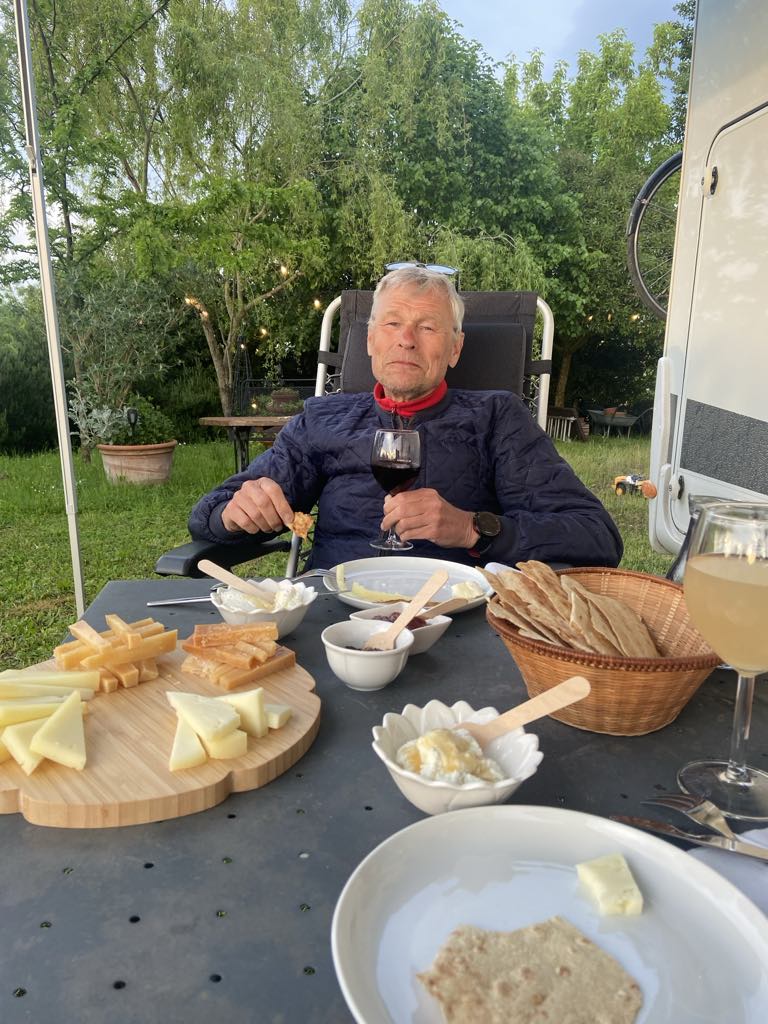 Victoria og hendes mand producerer picorino oste, så vi fik en platte med smagsprøver i rigelige mængder til aftensmaden. Det er en del af aftalen når man bruger agricamper appen, vi overnatter gratis, til gengæld køber vi producentens produkter.