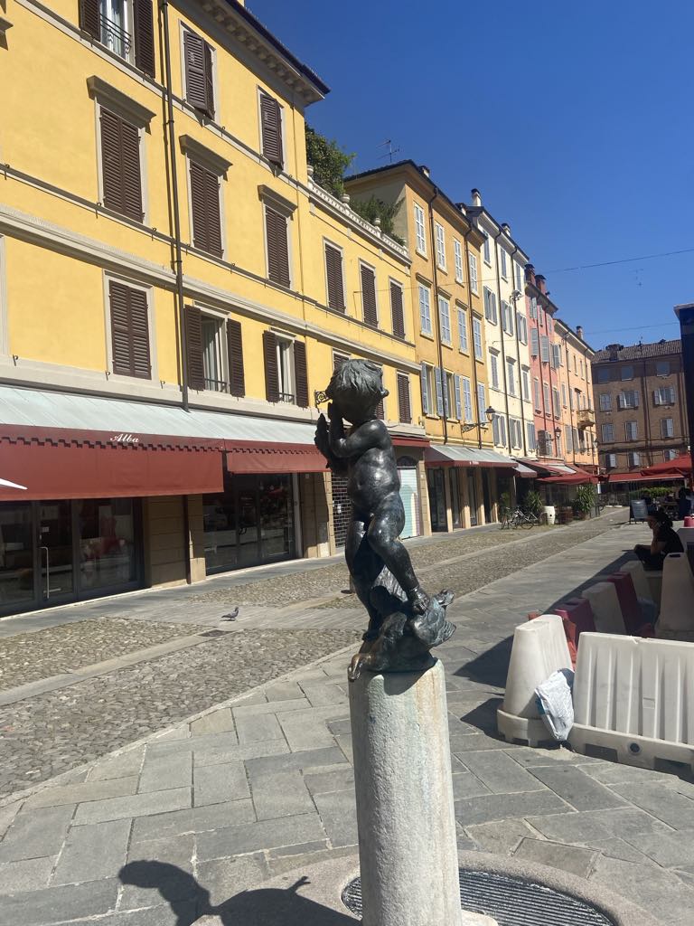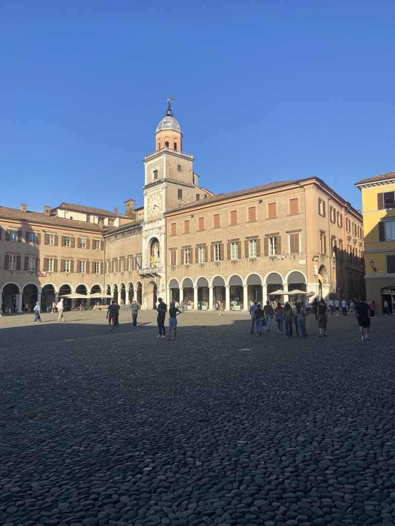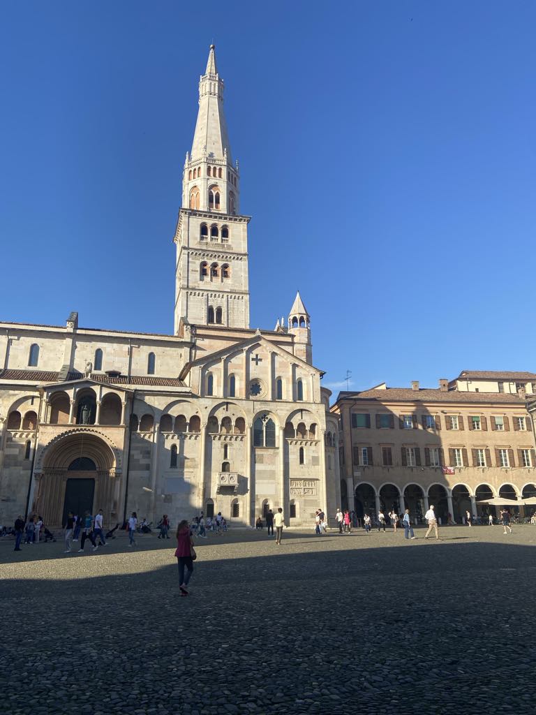 Og ganske rigtigt der var den fineste sti til Modena, og efter en halv times tid var vi på en plads i centrum af Modena, Piazza Grande, og den var lille bitte i forhold til Il Campo i Siena, hvor vi sad i går, så vi skulle vende skråen, Ok, det er så Piazza Grande.