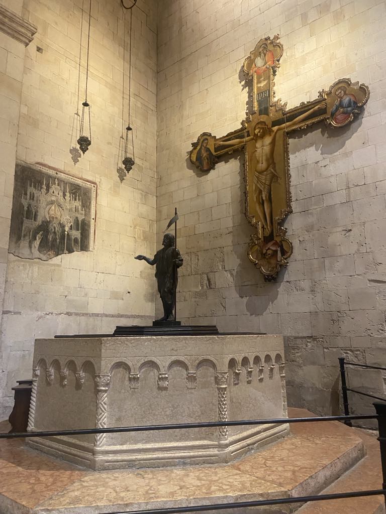 Så gik turen mod Domkirken, hvor vi uforvarende kom til påskemesse i 2017. Idag var vi blot turister, som de 999 andre, som besøgte kirken. Underligt og lidt ydmygt at gå omkring på et marmorgulv hvor folk har gået de sidste 800 år og se på freskoer, mosaikker og gamle dokumenter fra 1200-tallet!