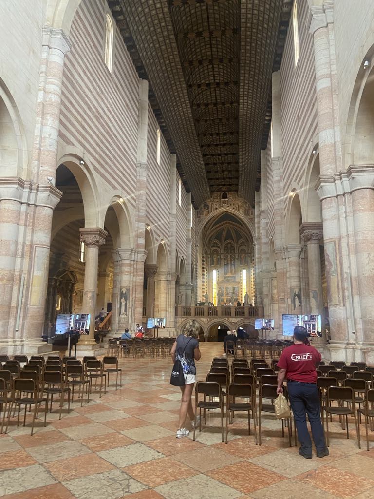Vores mål var Basilica di San Zeno Maggiore, den havde fanget vores opmærksomhed, da det er en romansk kirke.