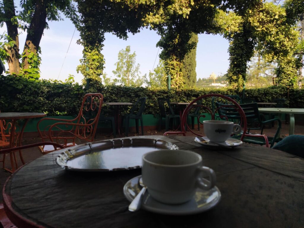 Den sidste morgen i Verona. Igen den dér kaffe! Der er noget med kaffe. Et blidt, og samtidig noget påtrængende spark ved dagens begyndelse. Igang!! Dagen ligger foran dig!!