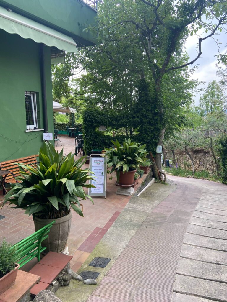 Et fint sted med grønne omgivelser. Jeg fik en snak med værterne, de sødeste og mest hjælpsomme mennesker, der gav os kort med cykelvej til Modena, gode råd om spisestedet m.m.
